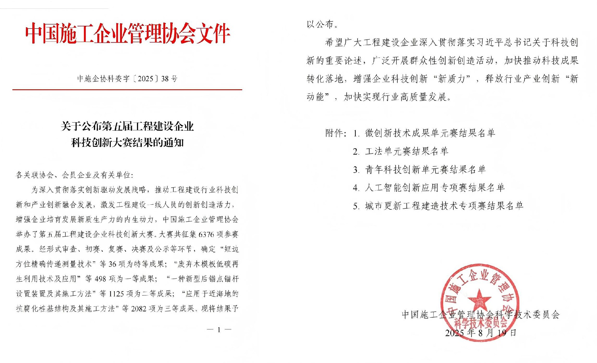 • 2025-08-27 集團(tuán)在第五屆全國(guó)工程建設(shè)企業(yè)科技創(chuàng)新大賽中斬···